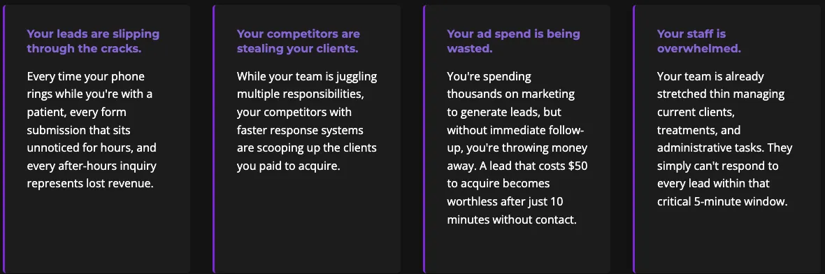 Your Business is leaking money every time a lead goes unanswered for more than 5 minutes. While you're busy with patients, managing staff, or simply away from your phone, potential clients are booking with your competitors.
