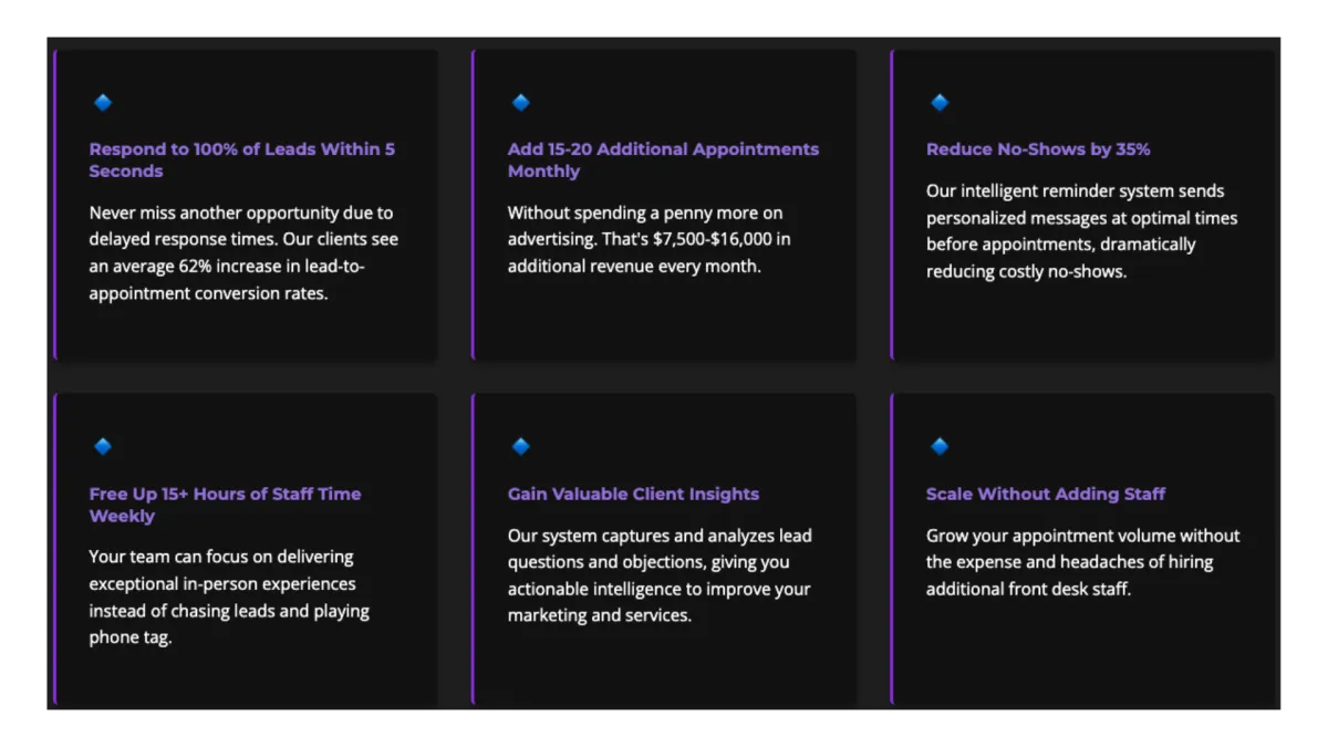 Our AI appointment setter contacts every lead within seconds, engages them in natural conversation, and books them directly into your calendar — recovering thousands in revenue you're currently losing.